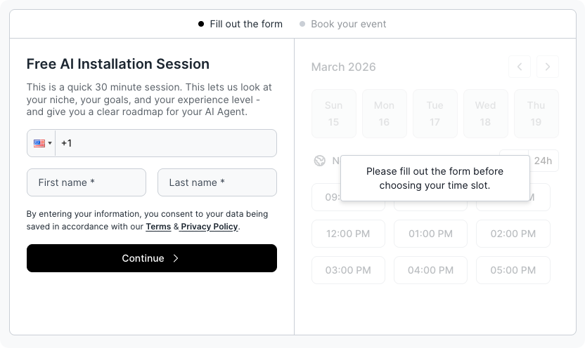 On this session, you'll connect with an Rewyse AI Agent Expert, who will help you implement the AI Agent and give you customized recommendations for your goals, niche, and experience.